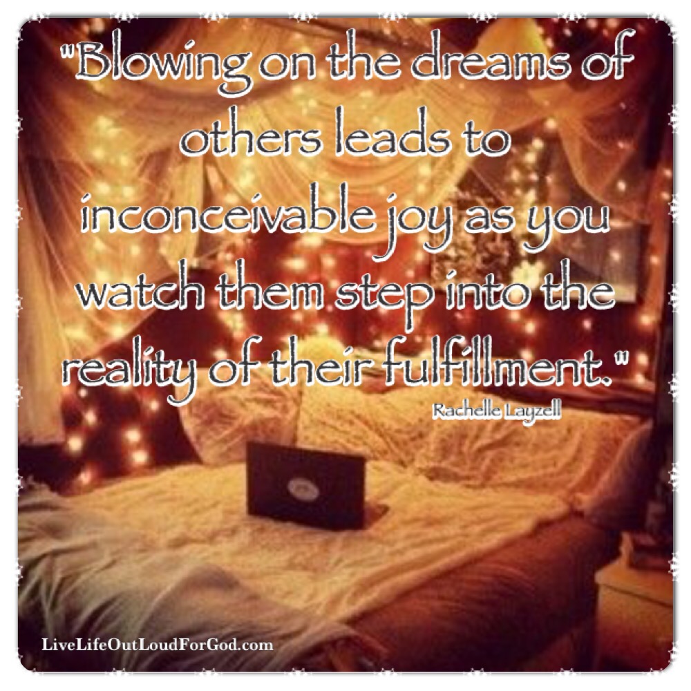 “Blowing on the dreams of others leads to inconceivable joy as you watch them step into the reality of their fulfillment.” – Rachelle Layzell