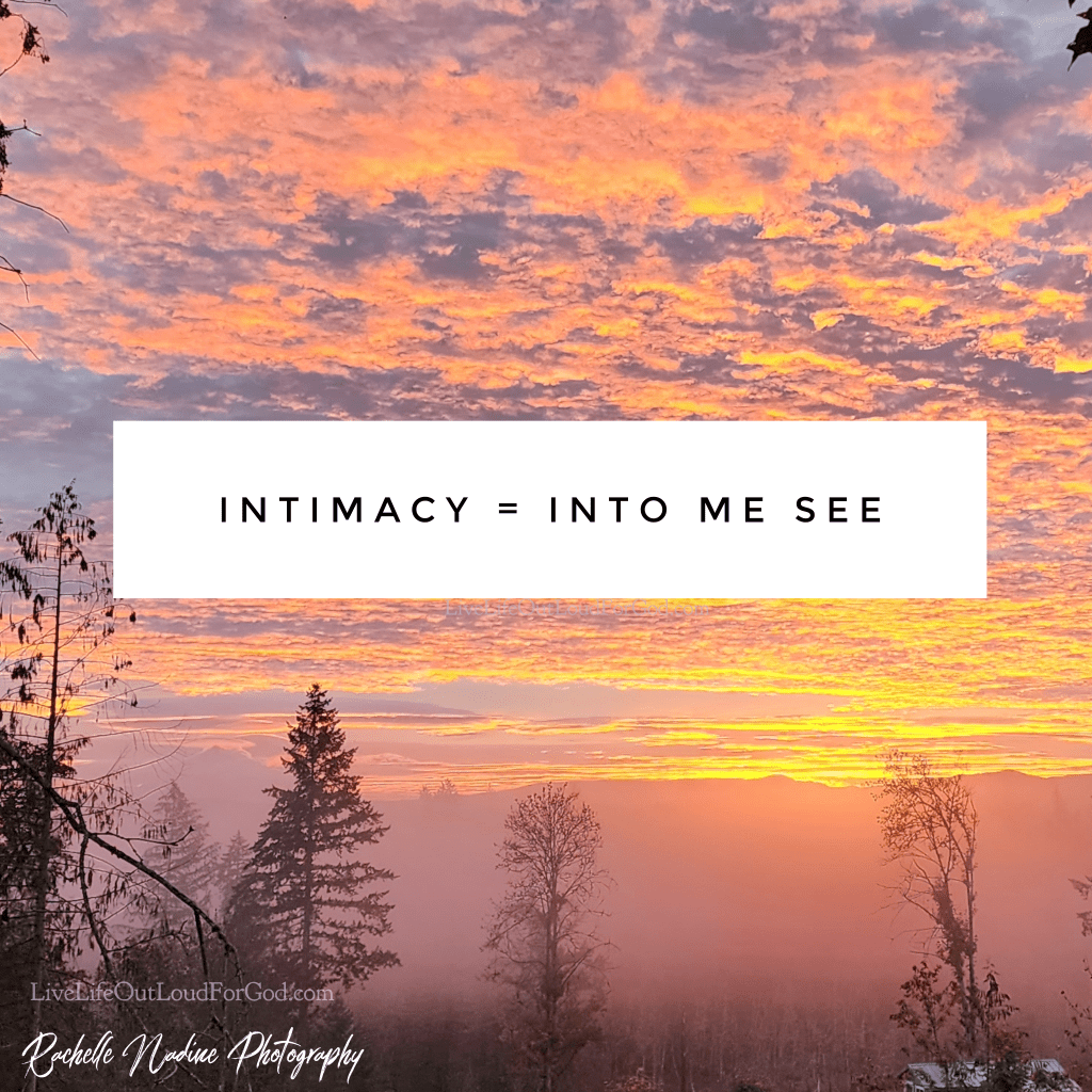 This Sunday as our pastor was sharing a message he kept using the word intimacy. I shared with my teenagers what I had learned about that word. Another way to look at the word INTIMACY is: Into Me See.