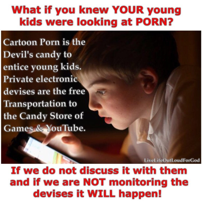 Cartoon Porn is the Devil’s candy to entise young kids. Private electonic devises are the free transportation to the candy store of Games and YouTube